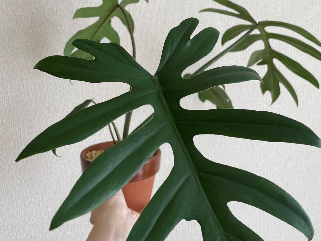 写真1枚目は今年購入したお気に入りの植物、フィロデンドロン・マヨイです。深く規則的な切れ込みが特徴的です。フィロデンドロン属の植物が好きで集めていますが、マヨイはどちらかというと珍しいようで、園芸店でみかけたのは1度だけです。フィロデンドロン属は成長が早いものが多いですが、マヨイはかなり成長が遅く、購入してからまだ2枚しか葉が増えていません。いまのところ幹は太く葉は大きく健康そうに育ってくれています。