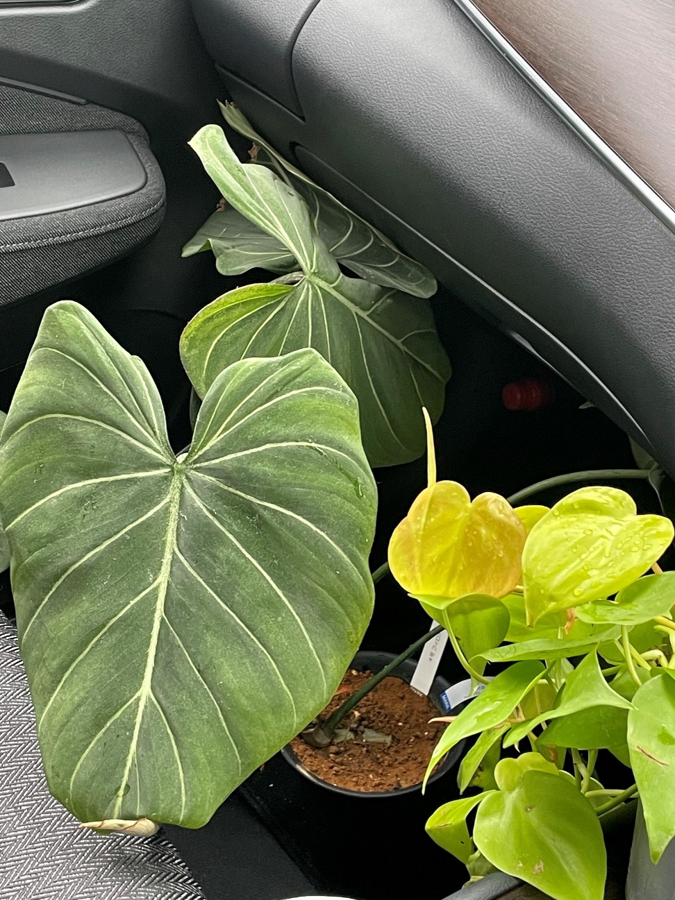 写真2枚目左は最近購入した、フィロデンドロン・グロリオーサムです(写真右はフィロデンドロン・ライム)。葉脈がはっきりした、ベルベットのような大きな葉が魅力的です。1番大きい葉はすでに縦30cm以上で、まだ開いていない葉もそれ以上大きくなりそうです。