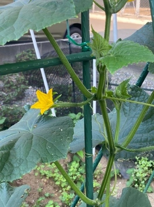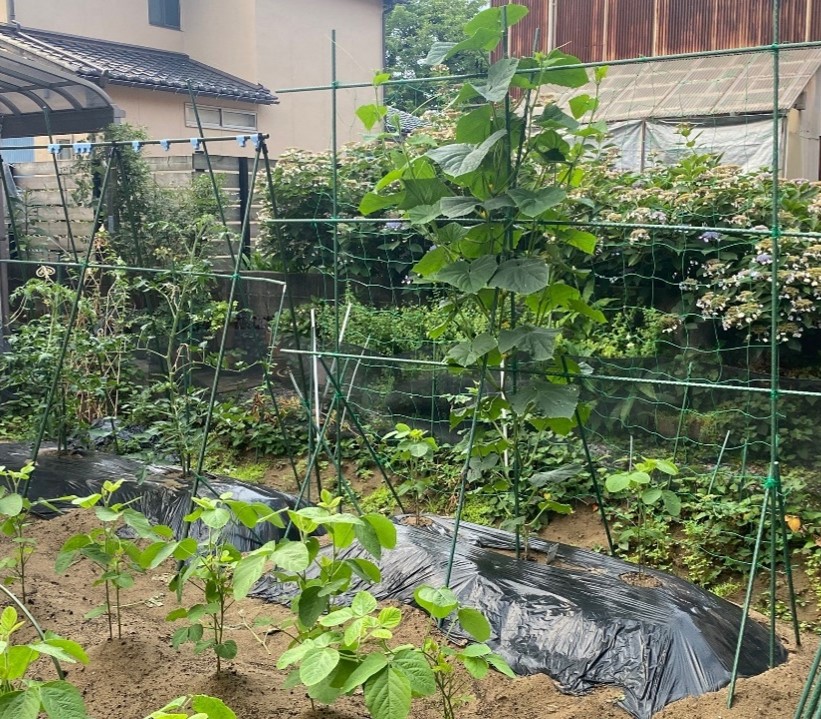 住宅地の中なので、近所迷惑にならぬよう無農薬で夏野菜のきゅうり、ミニトマト、枝豆などを中心に栽培しています。